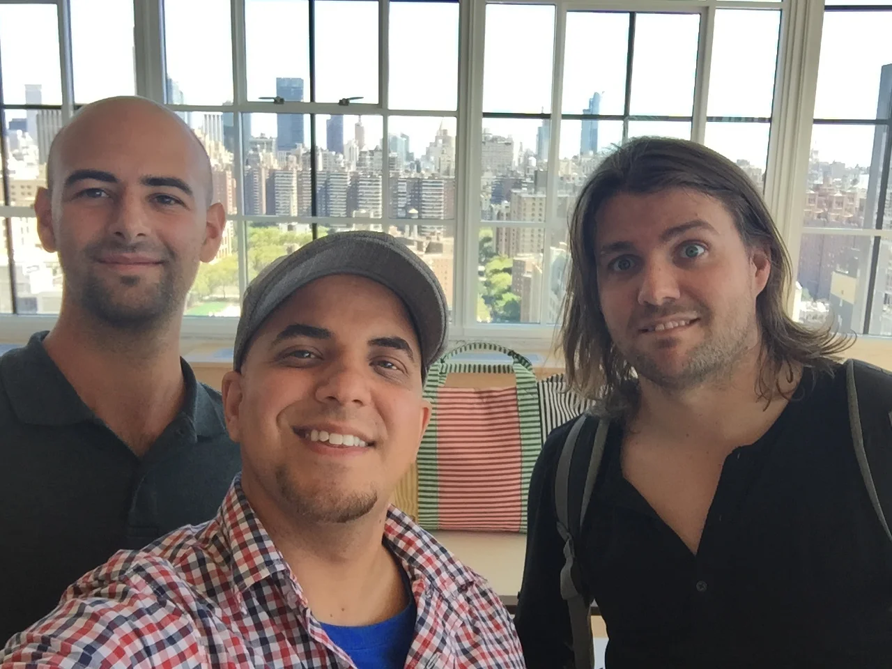 And just like that, new life was breathed into our heroes like Ulysses and his crew in the Odyssey. Our director was ready to lead the crew across the crowded and congested airport and make their escape. He stressed to our crew that now is the time to abandon their typical nice, kind and courteous nature to get where they have to go faster than possible. With that rally cry, they were off! Cutting through crowds of people, nudging some out of the way until they reached the taxi stand. Our director offered a driver $100 to get them downtown in less than an hour and this driver accepted the challenge and became a road warrior on the Fury Road. The driver was weaving around cars, changing lanes and jumping around curbs to get around cars and they arrived at the Tommy Hilfiger offices! They were five minutes late and Tommy Hilfiger’s people were remaining strict to their timeline and gave the crew three minutes to interview. The crew pushed past their limits and personal bests and set up camera and audio in record time to get the interview done. The photo here is the aftermath of the epic tale.